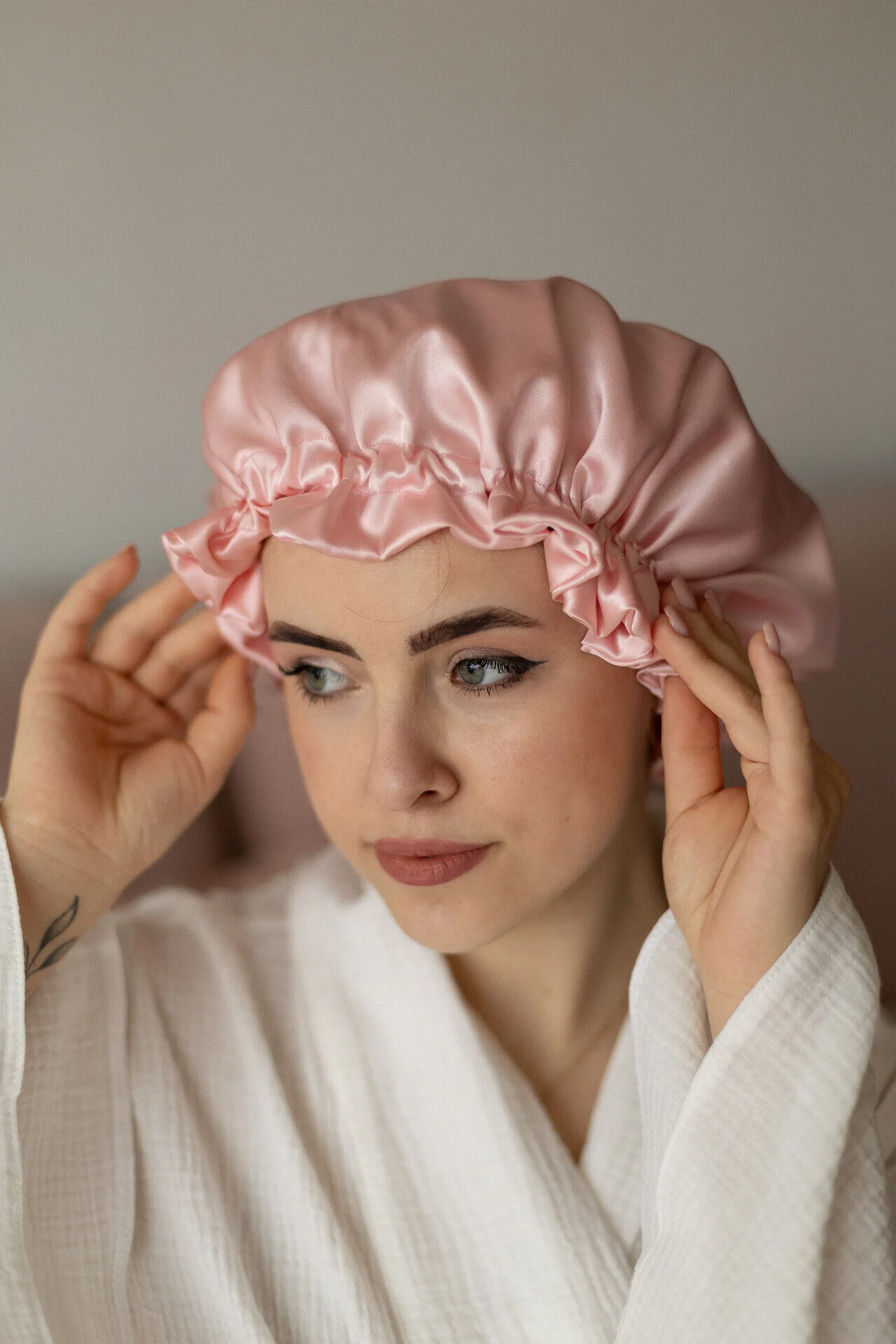 ✔️ допомагає триматись накрутці на бігуді – під час сну у шапочці можна не боятись, що волосся з бігуді розлізиться чи буде стирчати в різні сторони