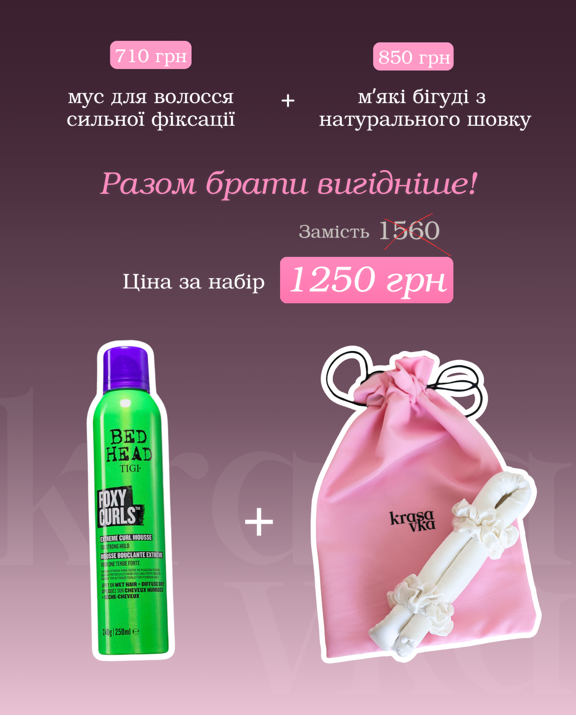 Шовкові бігуді для волосся + мус для пружності локонів