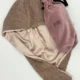 Двусторонній універсальний тюрбан складається із двох частин : одна сторона – котонова махра з коротким ворсом, друга – натуральний шовк .