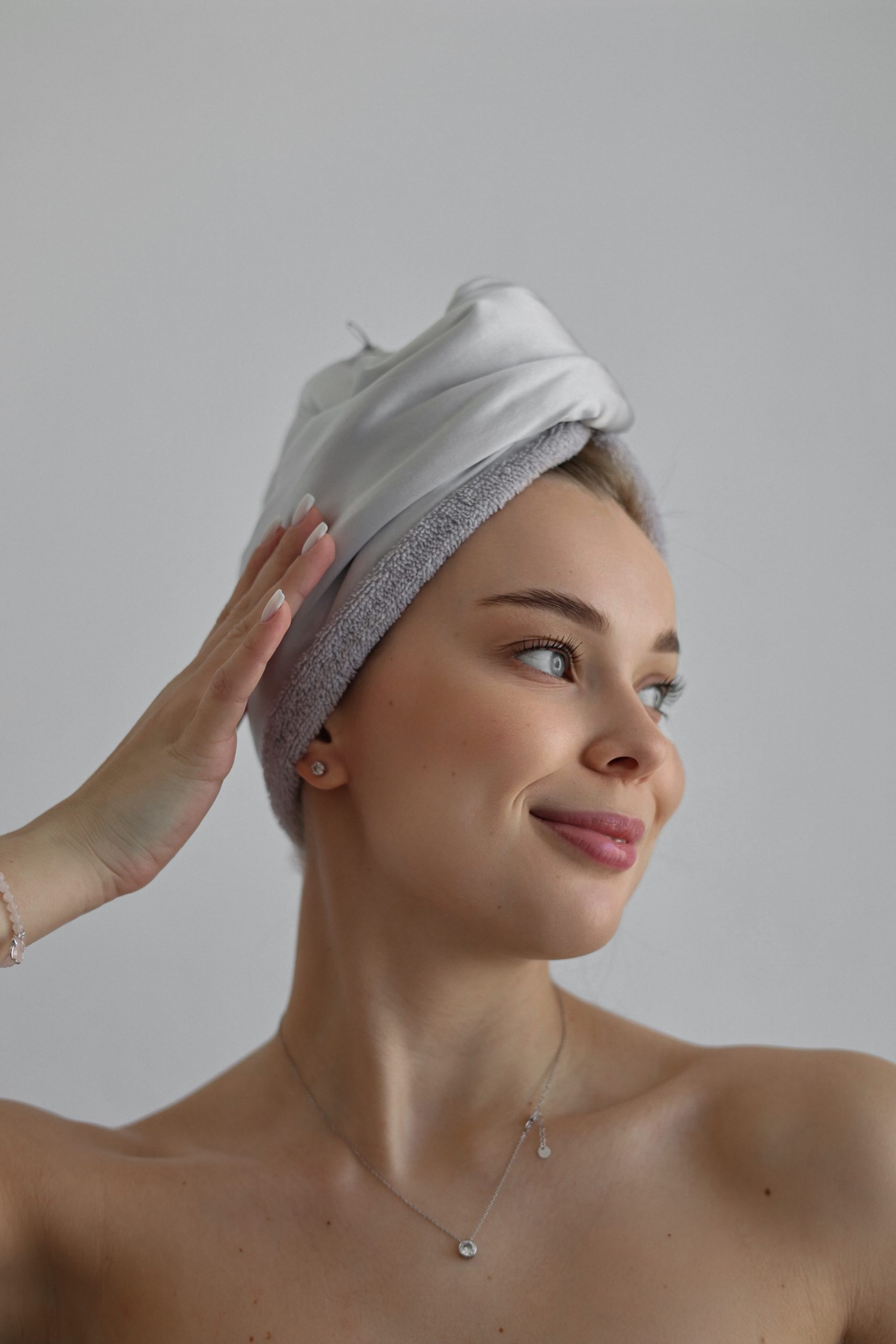 Рушник-тюрбан — це незамінний аксесуар ванної кімнати для будь-якої жінки. Він легко закріплюється на голові, що дозволяє вам рухатися вільно та займатися своїми ранковими справами, не думаючи про волосся.