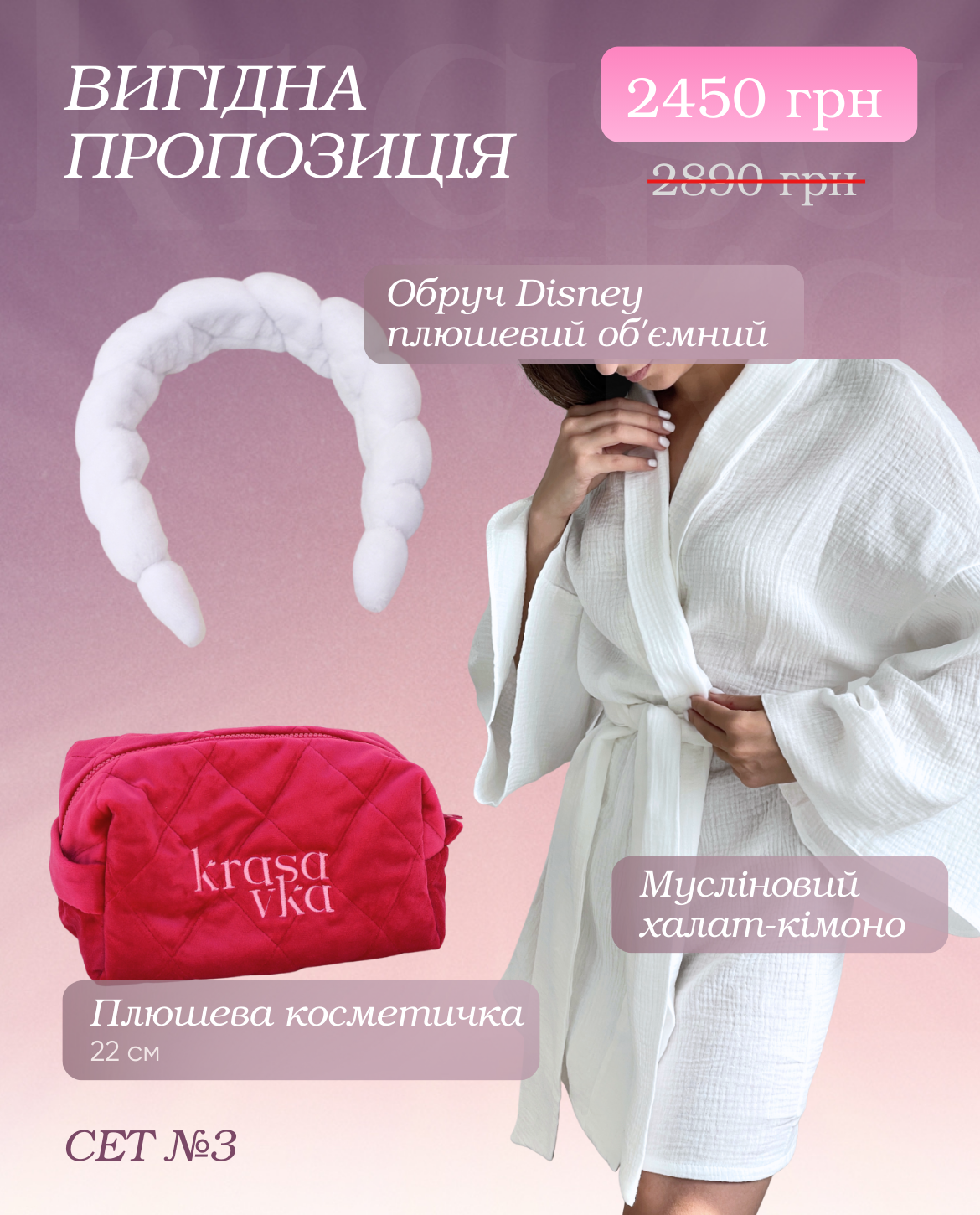 | Колір халатика | білий, рожевий |