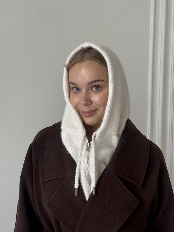 – подовжений капор зігріє образ з відкритою шиєю та плечима